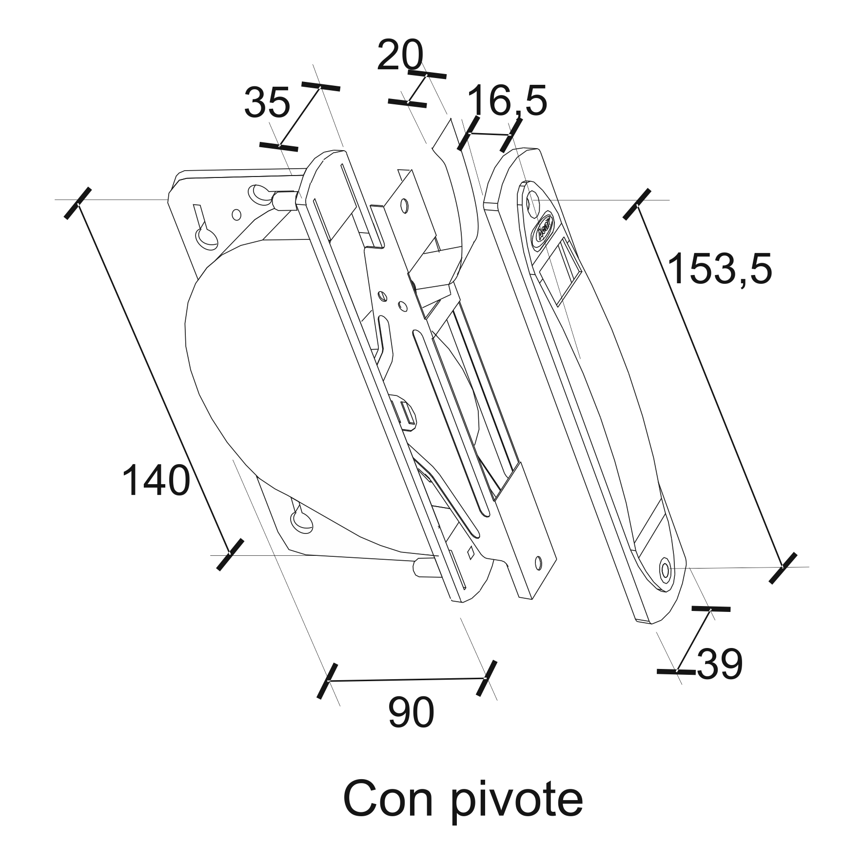 Recogedor de amarre lateral cinta de 20 ancho para empotrar C/Pivote